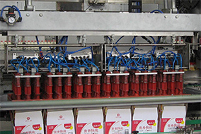 工作可靠:本機(jī)是由特殊氣動(dòng)元件來(lái)實(shí)現(xiàn)抓放產(chǎn)品的。通過(guò)機(jī)械運(yùn)轉(zhuǎn),氣動(dòng)和電控制把產(chǎn)品準(zhǔn)確、可靠地從輸瓶臺(tái)上裝入紙箱。